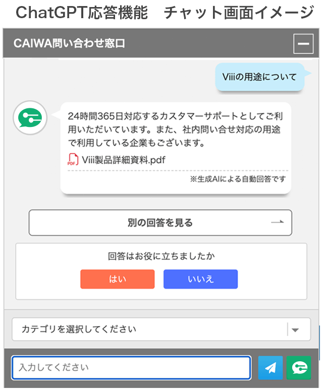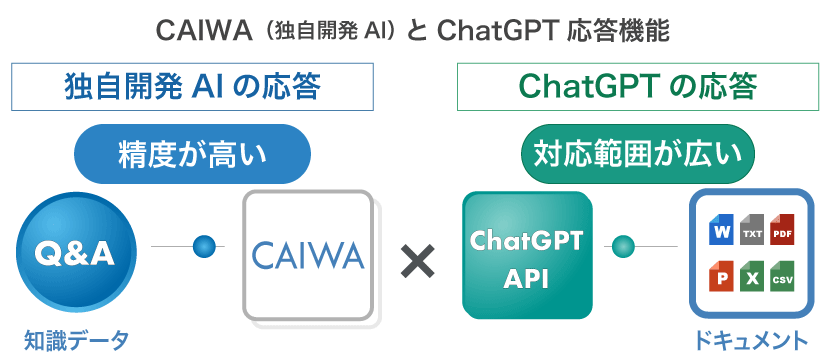 独自開発AIのCAIWA とChatGPTの長所を活かし高い正答率と広い対応範囲のチャットボットを実現!Q&A登録を必要とせずドキュメントを元に自動応答する「ChatGPT応答機能」を追加